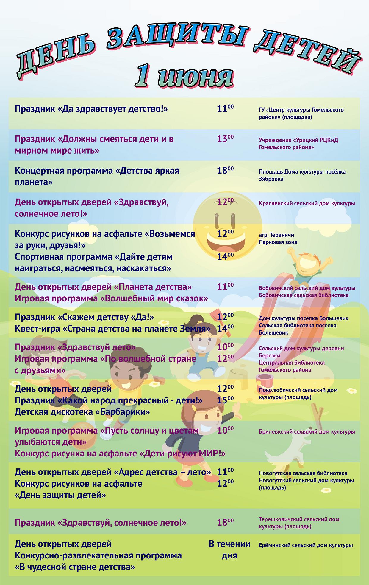 Программа мероприятий к 1 июня – Дню защиты детей